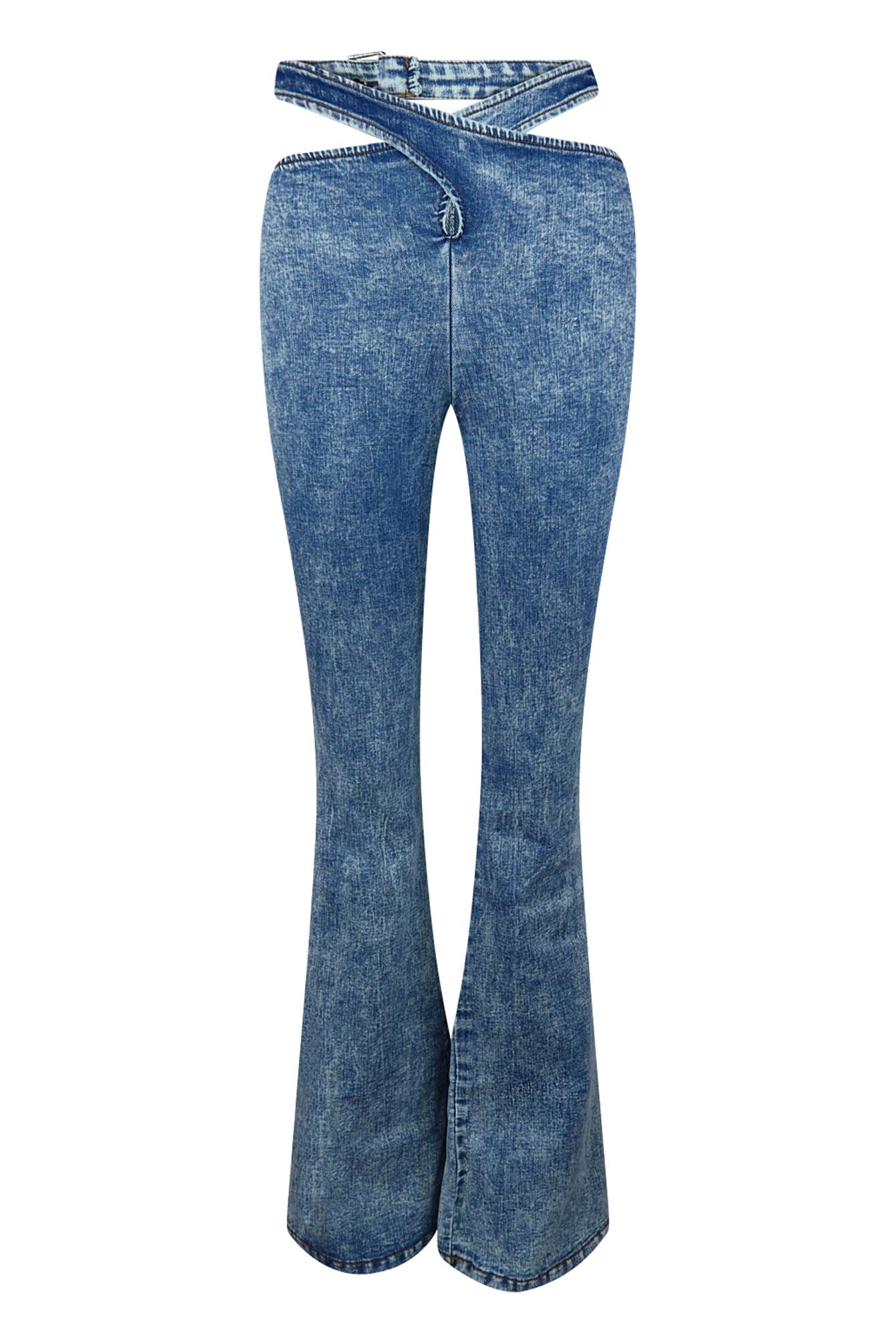You Make Me Special Washed Waist Cross Detail Denim Jeans