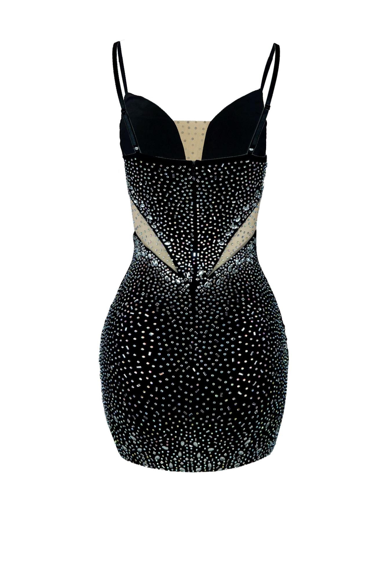 Tank adjustable straps mesh mini dress featuring rhinestone detail