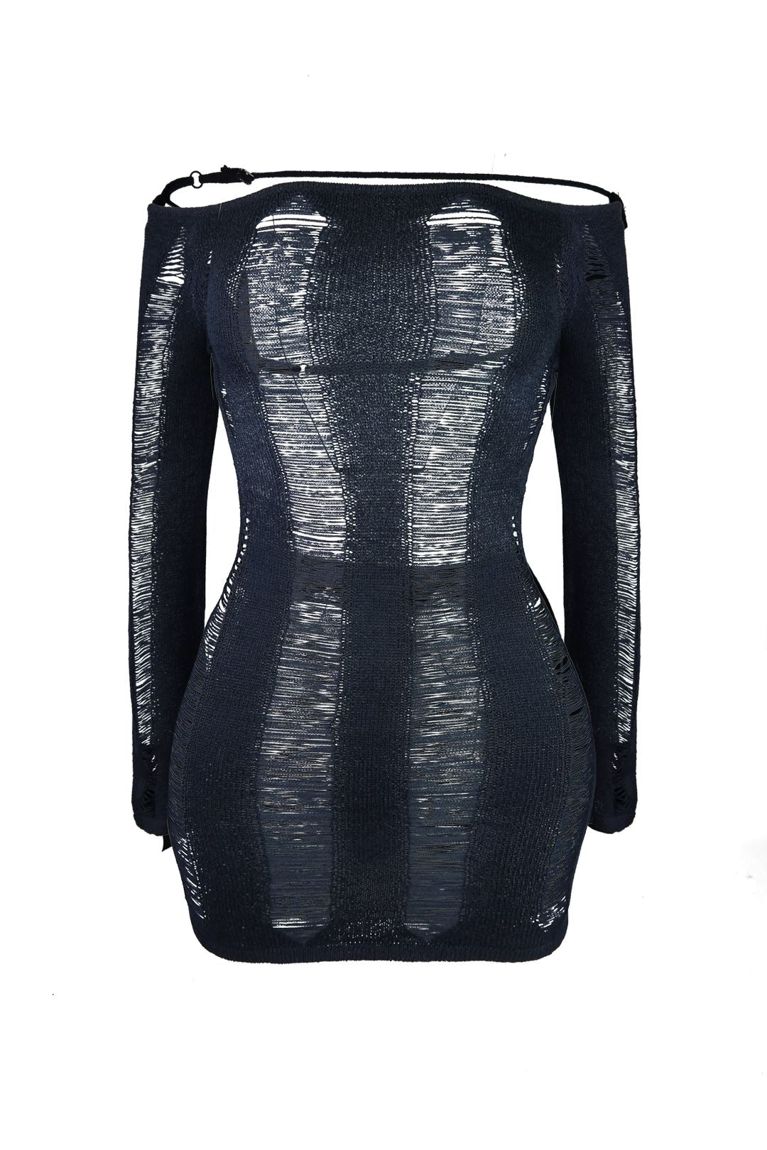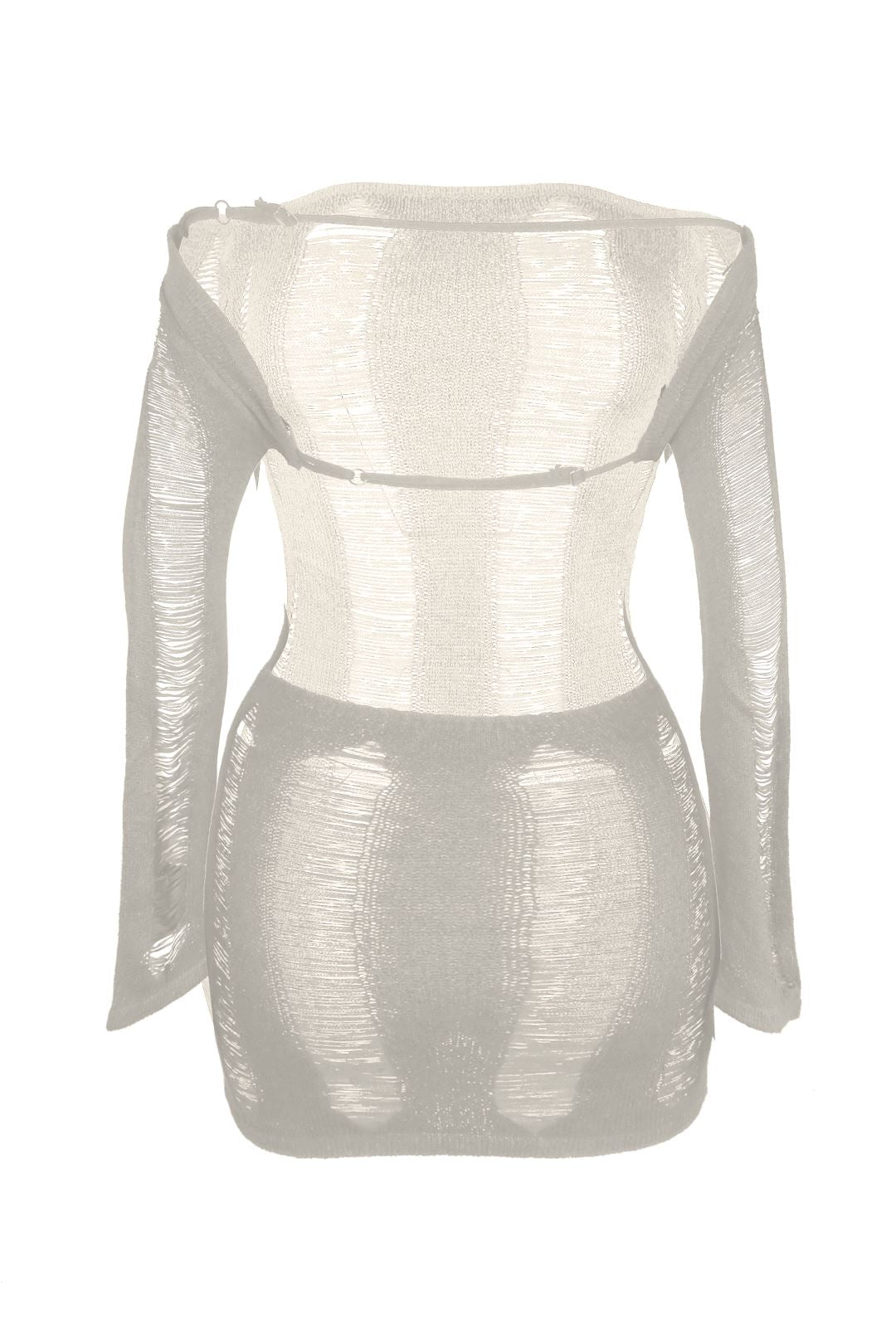 Open back cutout mini dress featuring off shoulder long sleeve detail